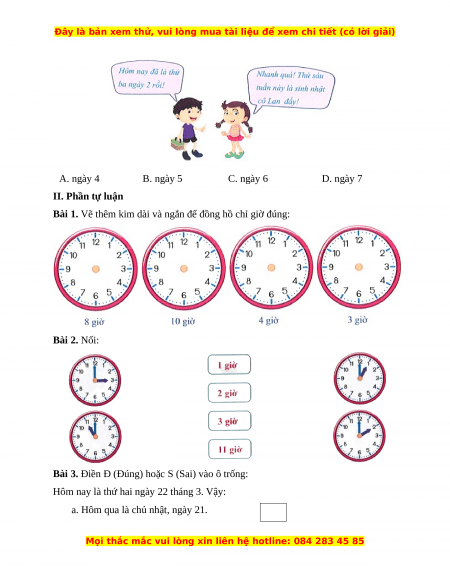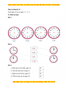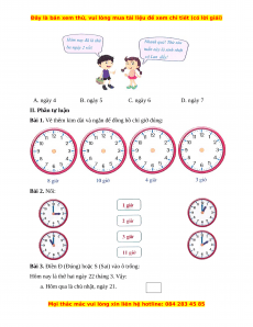 Vậy đồng hồ chỉ: 7 giờ. Câu 2. Đáp án đúng là: B