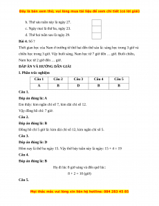Câu 3. Hôm nay là thứ ba ngày 15. Vậy thứ bảy tuần này là: A. ngày 16 B. ngày 17 C. ngày 18 D. ngày 19