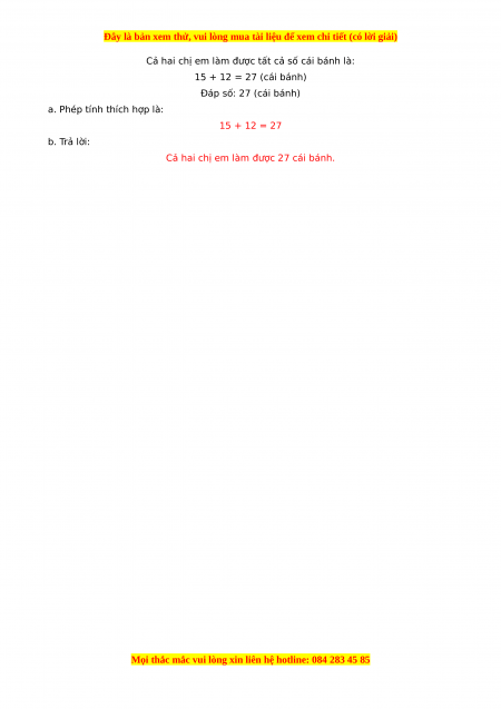 Em Linh làm được 12 cái bánh. Hỏi cả hai chị em làm được tất cả bao nhiêu cái bánh?