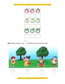 Bài 6. Đếm và điền (x) vào dưới bạn hái được nhiều quả nhất: