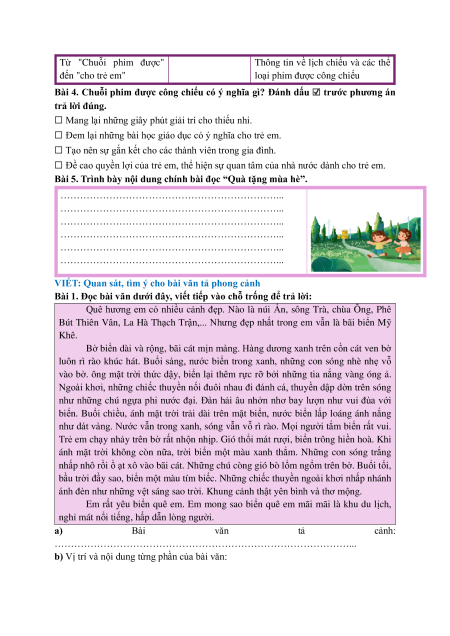 Bài 5. Trình bày nội dung chính bài đọc “Quà tặng mùa hè”.