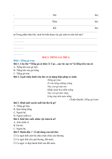 Bài 1. Đọc bài văn dưới đây, viết tiếp vào chỗ trống để trả lời: