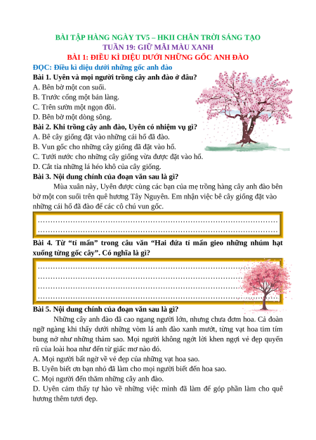 BÀI TẬP HÀNG NGÀY TV5 – HKII CHÂN TRỜI SÁNG TẠO
