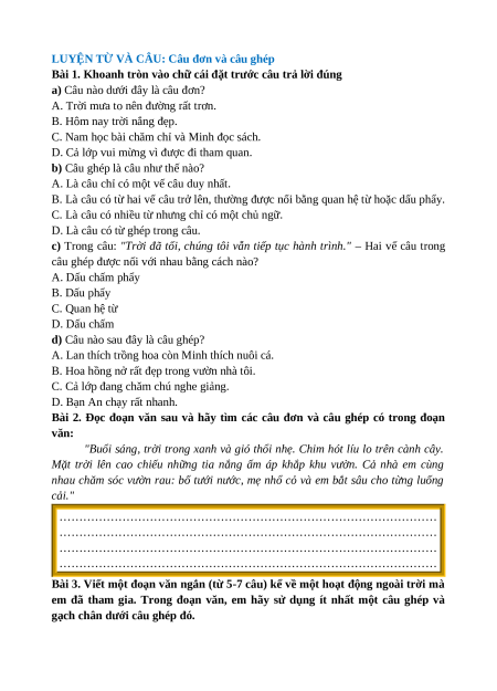 LUYỆN TỪ VÀ CÂU: Câu đơn và câu ghép