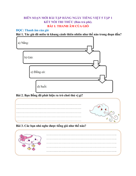 BIÊN SOẠN MỚI BÀI TẬP HẰNG NGÀY TIẾNG VIỆT 5 TẬP 1
