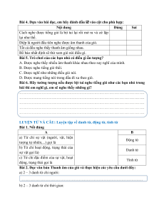 LUYỆN TỪ VÀ CÂU: Luyện tập về danh từ, động từ, tính từ Bài 1. Nối đúng A B