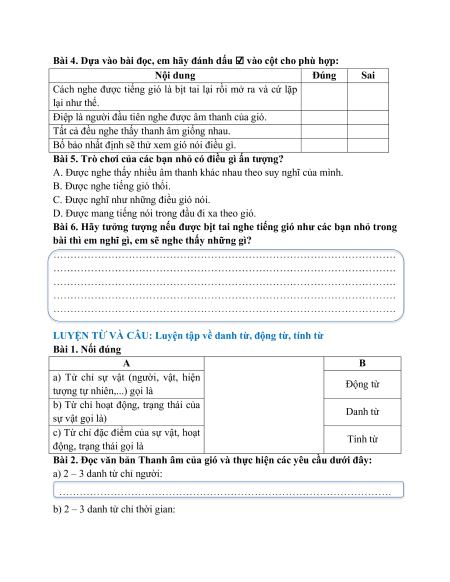 Bài 3. Các bạn nhỏ nghe được tiếng gió như thế nào?