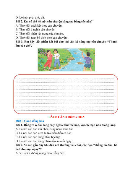 Bài 1. Đồng cỏ ở đầu làng có ý nghĩa như thế nào, với các bạn nhỏ trong làng.