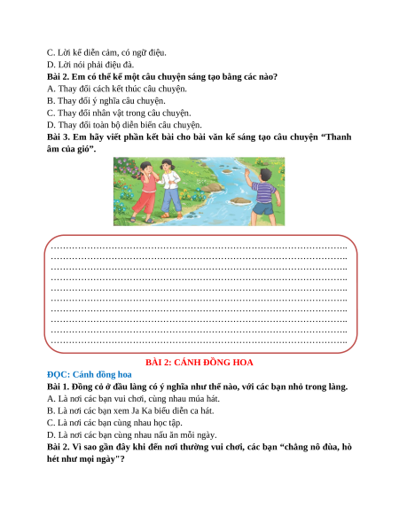Bài 3. Em hãy viết phần kết bài cho bài văn kể sáng tạo câu chuyện “Thanh âm của gió”.