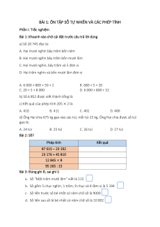 BÀI 1: ÔN TẬP SỐ TỰ NHIÊN VÀ CÁC PHÉP TÍNH Phần I: Trắc nghiệm