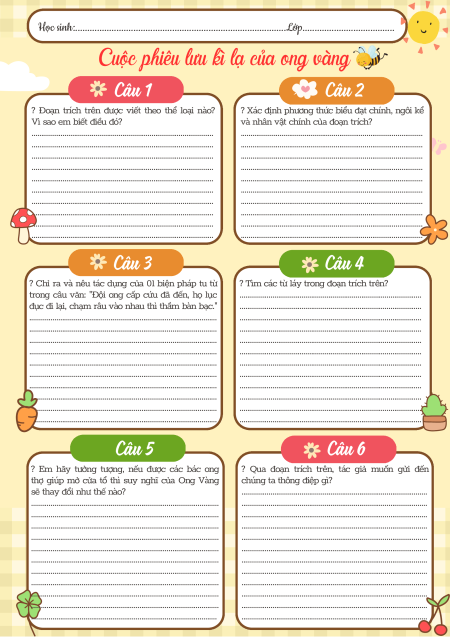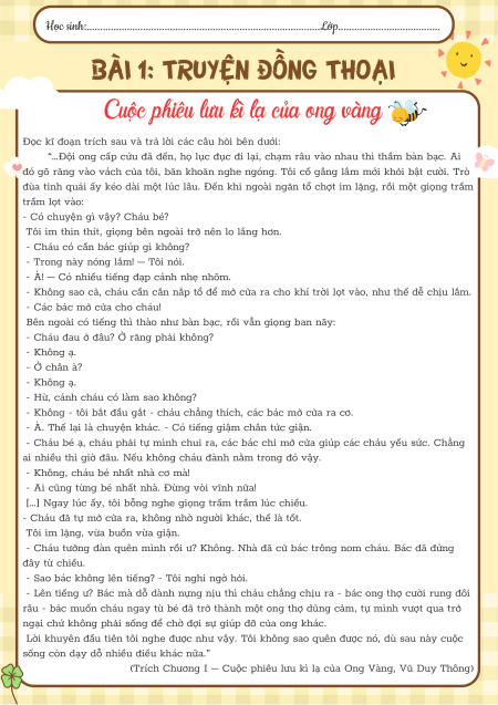 Cuộc phiêu lưu kì lạ của ong vàng Câu 1 Câu 2