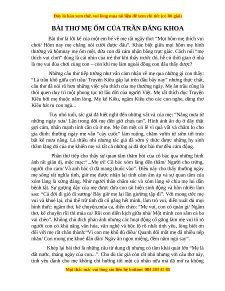 Câu 1: Văn bản “Bài thơ Mẹ ốm của Trần Đăng Khoa” thuộc thể loại nào? Hãy xác