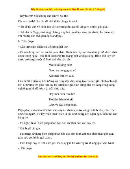 5. Viết đoạn văn trình bày cảm nhận của em về bài thơ “Lũy tre” của nhà thơ Nguyễn Công Dương: Mỗi sớm mai thức dậy Lũy tre xanh rì rào Ngọn tre cong gọng vó Kéo mặt trời lên cao