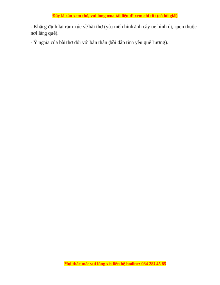 - Khẳng định lại cảm xúc về bài thơ (yêu mến hình ảnh cây tre bình dị, quen thuộc