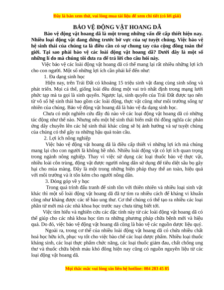 Bảo vệ động vật hoang dã là một trong những vấn đề cấp thiết hiện nay.