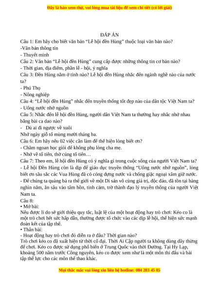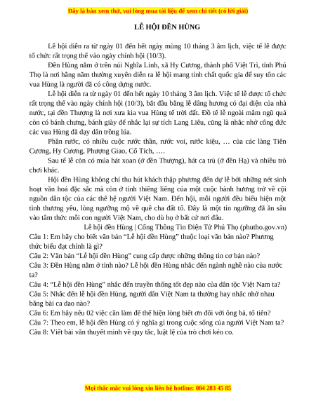 Câu 1: Em hãy cho biết văn bản “Lễ hội đền Hùng” thuộc loại văn bản nào? Phương