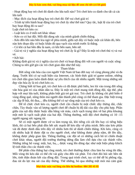 - Hoạt động hay trò chơi đó dành cho lứa tuổi nào? Trò chơi kéo co dành cho tất cả các