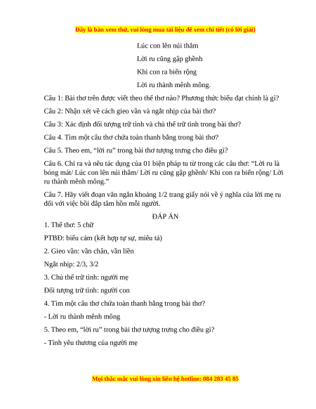 Đây là bản xem thử, vui lòng mua tài liệu để xem chi tiết (có lời giải)