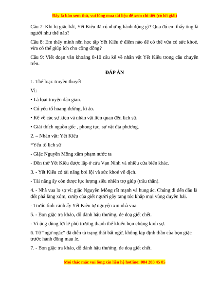 Câu 9: Viết đoạn văn khoảng 8-10 câu kể về nhân vật Yết Kiêu trong câu chuyện trên. ĐÁP ÁN