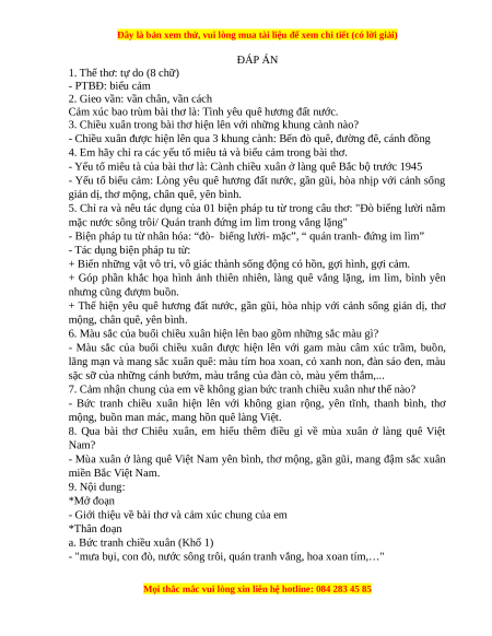 Câu 8. Qua bài thơ Chiều xuân, em hiểu thêm điều gì về mùa xuân ở làng quê Việt Nam?