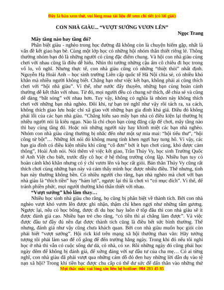 - Con nhà giàu... “vượt sướng vươn lên”.