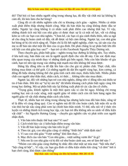 Phiếu bài tập Tuần 2 Con nhà giàu...."Vượt sướng vươn lên" Ngữ văn 7