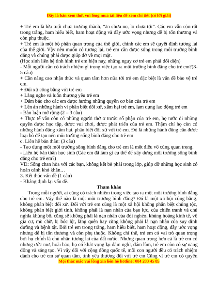 - Vì sao cần tạo ra môi trường bình đẳng cho trẻ em? (3-5 câu)