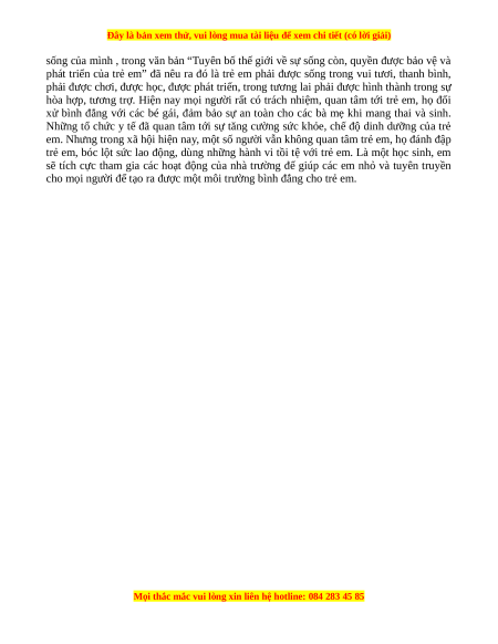 phát triển của trẻ em” đã nêu ra đó là trẻ em phải được sống trong vui tươi, thanh bình,