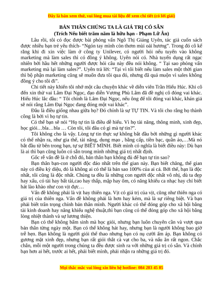 BẢN THÂN CHÚNG TA LÀ GIÁ TRỊ CÓ SẴN