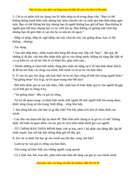 5. Chỉ ra và phân tích tác dụng của 01 biện pháp tu từ trong đoạn văn: “Bạn có thể