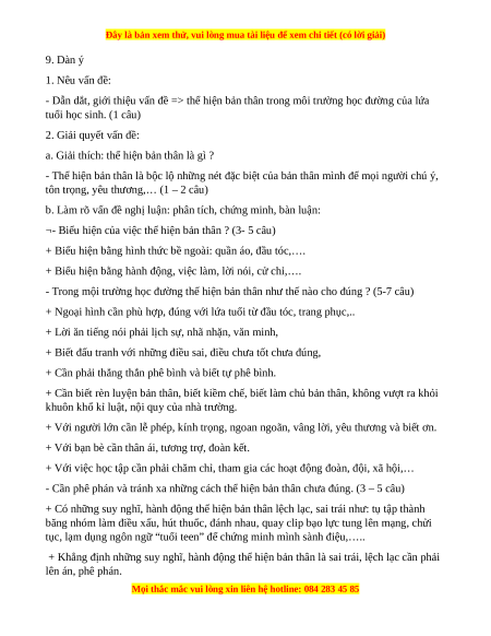 9. Thể hiện bản thân là một nhu cầu của lứa tuổi học sinh. Hãy viết một đoạn văn ngắn