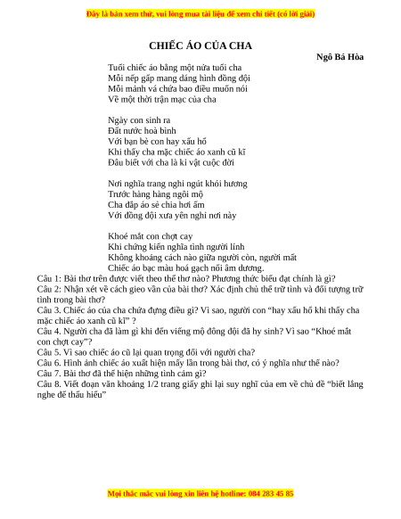 Đây là bản xem thử, vui lòng mua tài liệu để xem chi tiết (có lời giải)