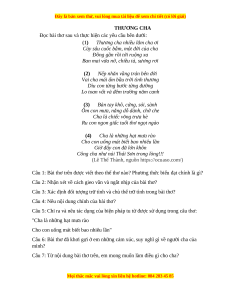 Phiếu bài tập Tuần 3 Thương cha Ngữ văn 6