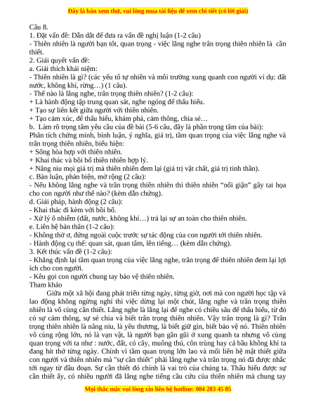 Câu 8. Hãy viết một đoạn văn khoảng 2/3 trang giấy thi, hãy nêu suy nghĩ của em về sự