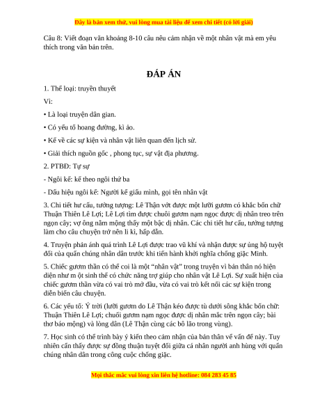 Câu 8: Viết đoạn văn khoảng 8-10 câu nêu cảm nhận về một nhân vật mà em yêu thích trong văn bản trên. ĐÁP ÁN