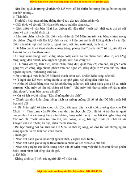 - Nêu khái quát ấn tượng về nhân vật Dế Mèn: để lại nhiều ấn tượng khó quên với người đọc bởi những... b. Thân bài: