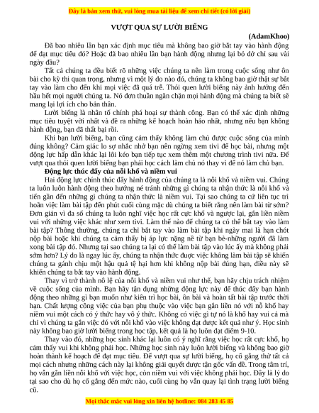 VƯỢT QUA SỰ LƯỜI BIẾNG (AdamKhoo)