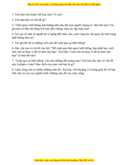 7. “Vượt qua sự lười biếng” cần cho những đối tượng nào? Văn bản đọc bàn về vấn đề