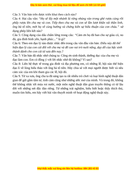 Câu 8: Liên hệ thực tế trong gia đình và địa phương em, có những lễ, hội nào thể hiện