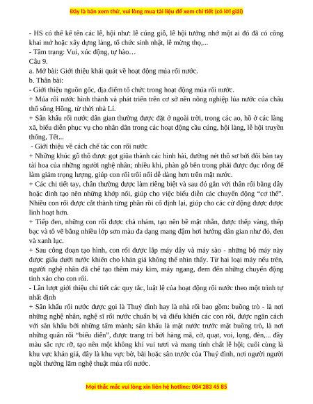 a. Mở bài: Giới thiệu khái quát về hoạt động múa rối nước. b. Thân bài: