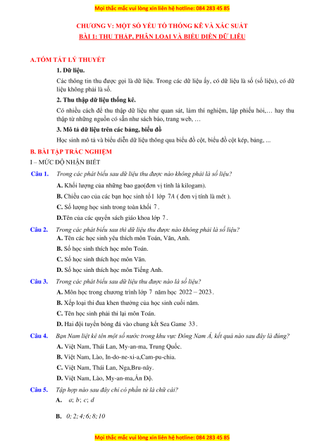 BÀI 1: THU THẬP, PHÂN LOẠI VÀ BIỂU DIỄN DỮ LIÊU