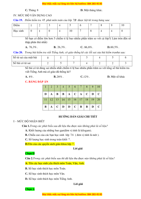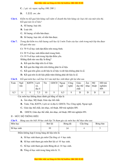 D. Kết quả trên là dữ liệu phần trăm không phải dữ liệu là số. Câu 8.