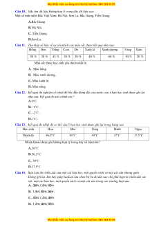 Câu 12. Kết quả thí nghiệm về nhiệt độ bắt đầu đông đặc của nước của 4 bạn học sinh được ghi lại