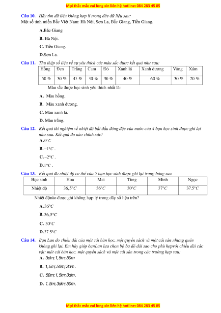 Câu 10. Hãy tìm dữ liệu không hợp lí trong dãy dữ liệu sau: