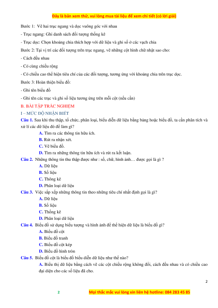 - Ghi tên các trục và ghi số liệu tương ứng trên mỗi cột (nếu cần) B. BÀI TẬP TRẮC NGHIỆM