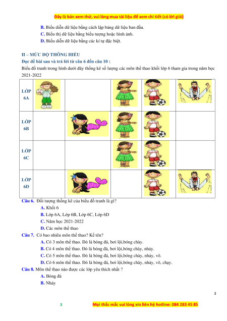 Câu 6. Đối tượng thống kê của biểu đồ tranh là gì? A. Khối 6