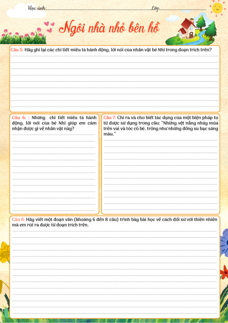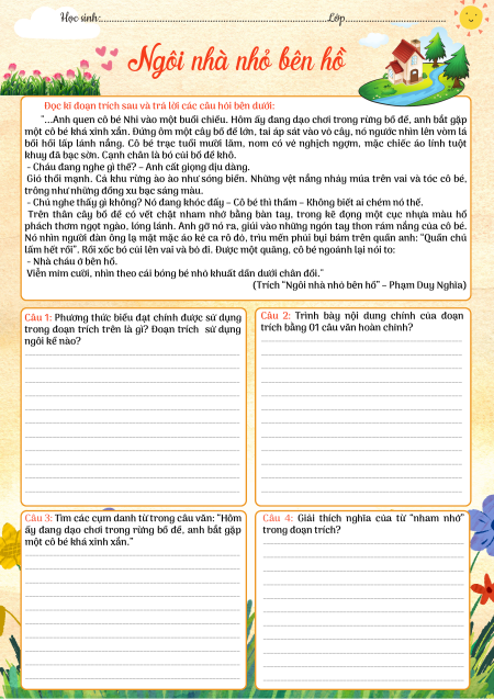Học sinh:.....................................................................................Lớp...................................... Ngôi nhà nhỏ bên hồ