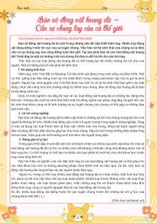 Bảo vệ động vật hoang dã là một trong những vấn đề cấp thiết hiện nay. Nhiều loại động