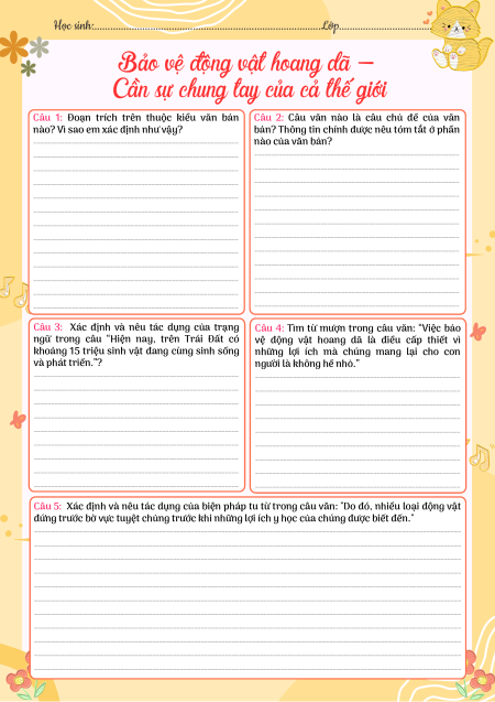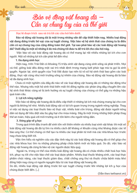 Câu 7: Là một học sinh, em thấy mình cần làm gì để góp phần bảo vệ các loài động vật hoang dã?