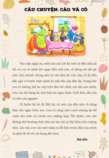 Vào một ngày nọ, một con cáo ích kỷ mời cò đến nhà ăn